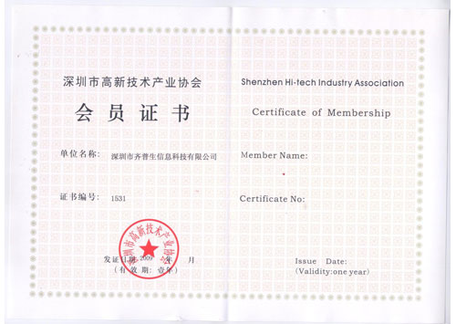 • 深圳市高新技術(shù)產(chǎn)業(yè)協(xié)會(huì)會(huì)員證書