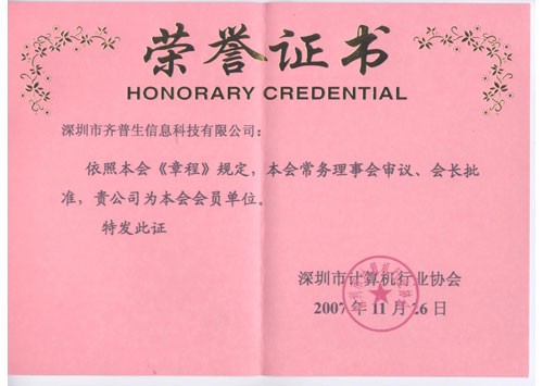• 計(jì)算機(jī)行業(yè)協(xié)會(huì)會(huì)員榮譽(yù)(證書)
